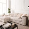 Stell dir vor, du kommst nach einem langen Tag nach Hause und sinkst in ein Sofa, das dich mit offenen Armen empfängt. Ein Sofa, das nicht nur bequem ist, sondern auch eine stilvolle Bereicherung für dein Wohnzimmer darstellt. Das Ecksofa Svada in Cord Beige mit Recamiere links ist genau das – ein Ort der Entspannung und des Wohlgefühls, der deinen Alltag verschönert.